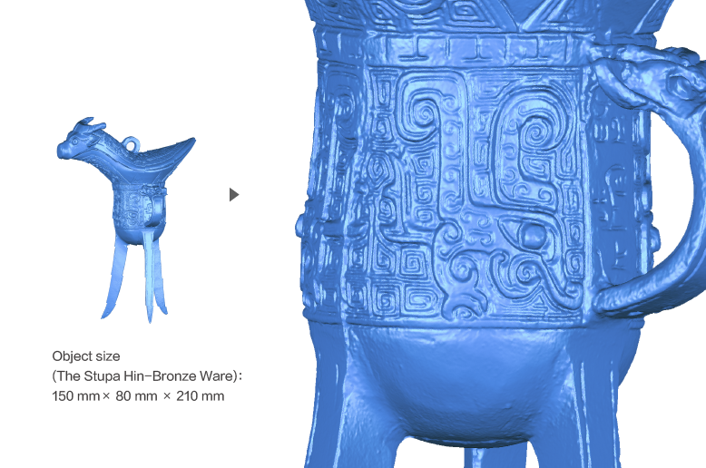 Duas câmeras coloridas de 12 MP são instaladas para capturar um mapa de cores detalhado de 24 bits, replicando a cor realista do objeto físico. Transcan C é a solução ideal para capturar dados 3D coloridos para exibição virtual.